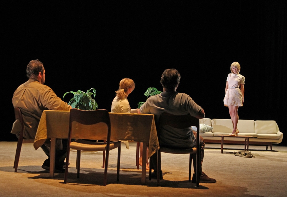 Une maison de banlieue à l’image des catalogues. Une famille (presque) parfaite. Barbara, Bernard et Bruno forment ce triangle où chacun se délecte de ses propres obsessions matérielles. Prisonnier d’un monde qu’il n’a pas choisi, le fils déverse sa colère sur ses parents. La mère, femme chargée d’amertume, s’essaie à ajouter du piquant dans sa vie, tandis que le père, homme apathique, s’occupe à épier les voisins.